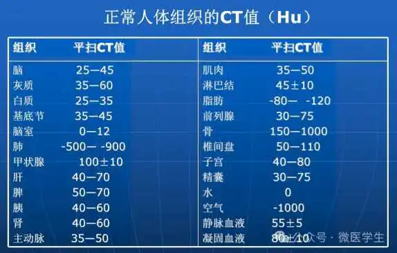 空气对X线的吸收为0,故空气的CT值为-1000;骨组织的X线衰减是水的2-4倍,CT值为+1000;水的CT值为0。