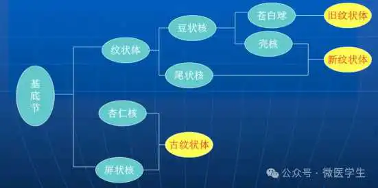 - 埋藏在两侧大脑半球深部的灰质核团,是组成锥体外系的主要结构。