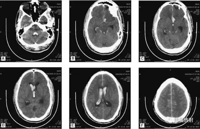 F:脑出血破入四脑室。