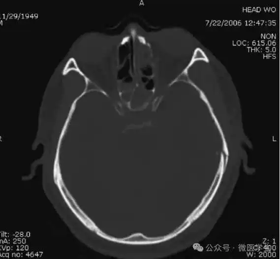 额骨骨折:左侧额窦内外侧壁骨折