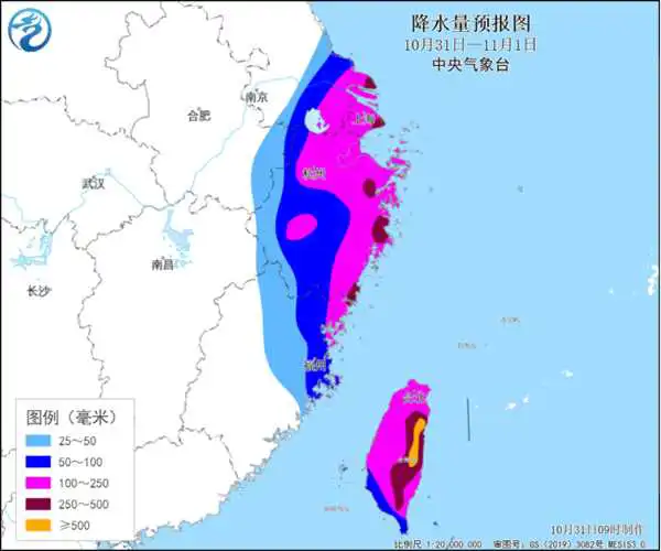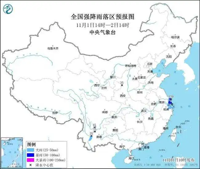 11月1日08时至2日08时,浙江中东部、上海、江苏东南部等地将有大到暴雨,部分地区有大暴雨。