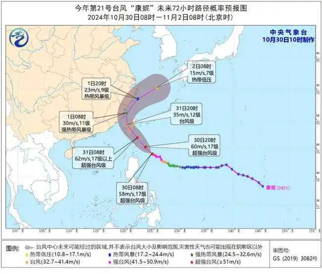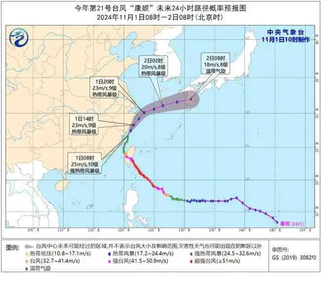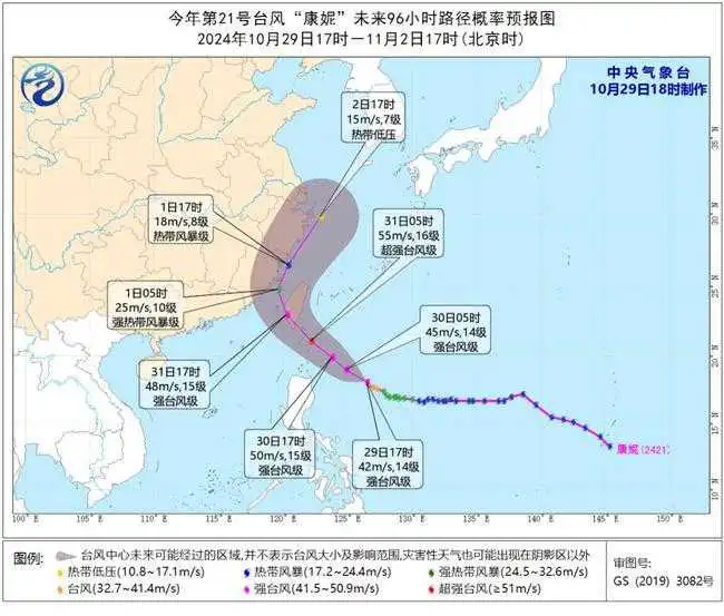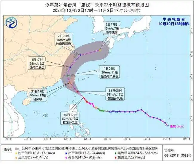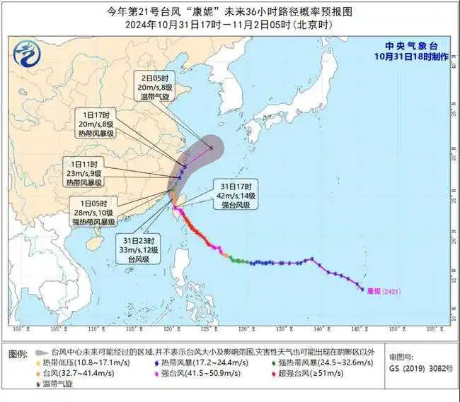 台风“康妮”北上路径高度贴合我国东南沿海海岸线,东南沿海及台湾等地将出现强风雨天气,上海、浙江、福建、台湾等地局地降雨量或突破历史同期极值。