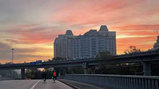 10月30日早晨,北京出现橙粉朝霞,将清晨的第一缕光渲染成温暖的色彩,温柔地唤醒沉睡的城市。