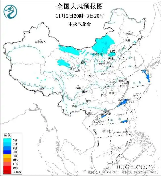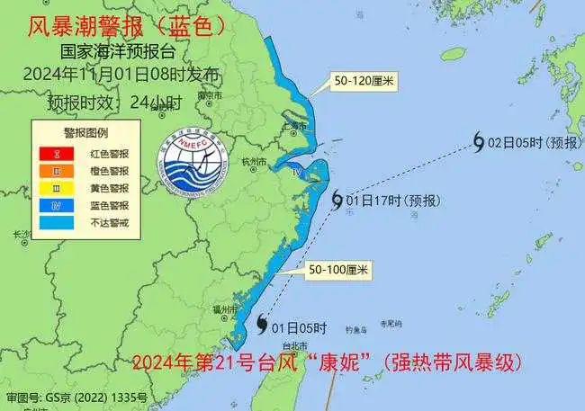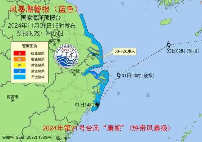 国家海洋预报台11月1日16时发布风暴潮蓝色警报。