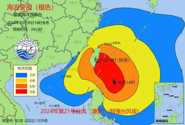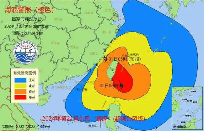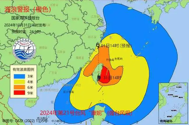 国家海洋预报台10月31日16时发布海浪橙色警报。