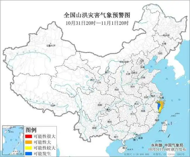 自然资源部与中国气象局10月31日08时联合发布地质灾害气象风险预警。