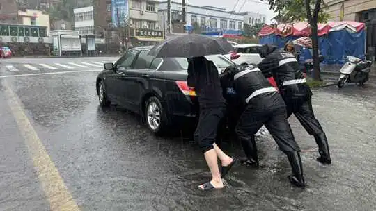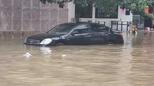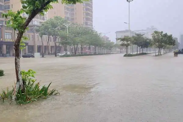 受台风残余低涡和冷空气共同影响,海南琼海嘉积镇出现强降雨,造成严重积水。