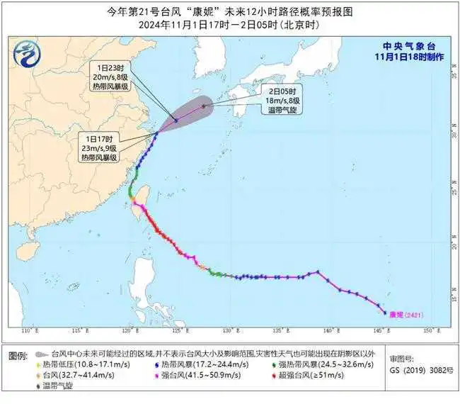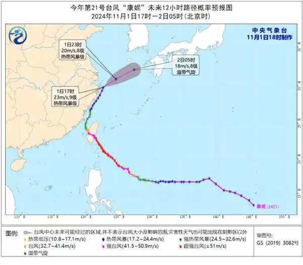 “康妮”已于今天(11月1日)晚上在东海北部海面上变性为温带气旋,中央气象台20时对其停止编号。