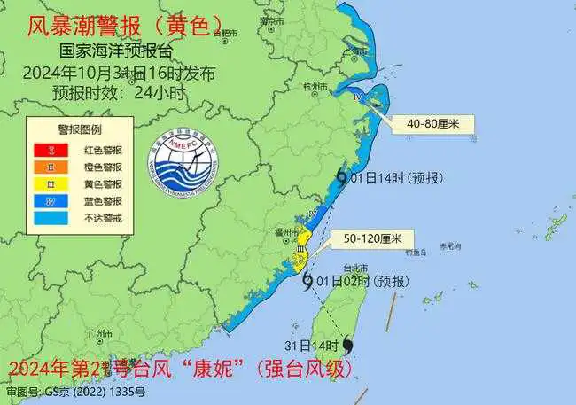 国家海洋预报台10月31日16时发布风暴潮黄色警报。