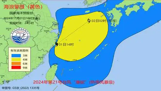 国家海洋预报台11月1日16时发布海浪黄色警报。
