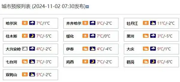今天(10月29日)夜间到后天,黑龙江多雨雪天气出没,大兴安岭北部有中雪,局地大雪,哈尔滨、牡丹江等地有阵雨。