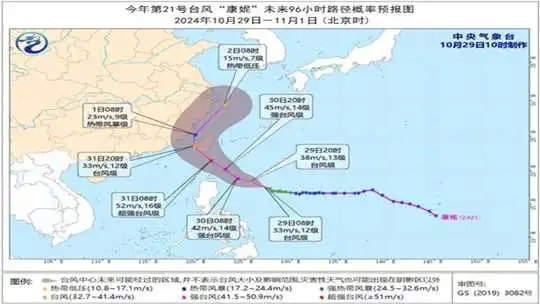 中央气象台10月29日18时继续发布台风蓝色预警。
