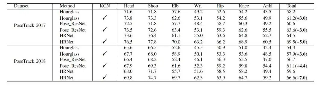 表3 KCN 方法在PoseTrack 2018 验证集上通用性分析(MOTA %)