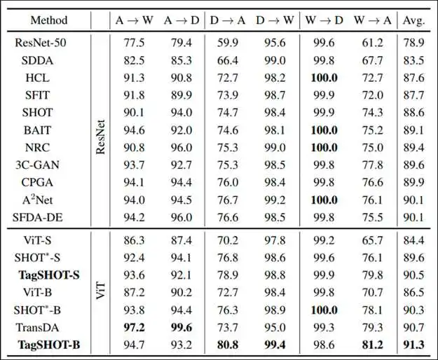 表1 所提出的方法与现有方法在Office-31数据集上的性能比较