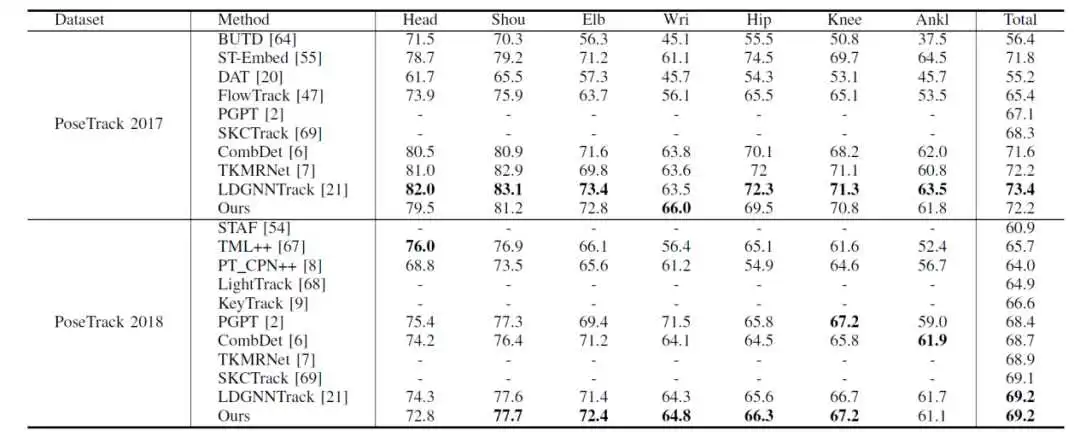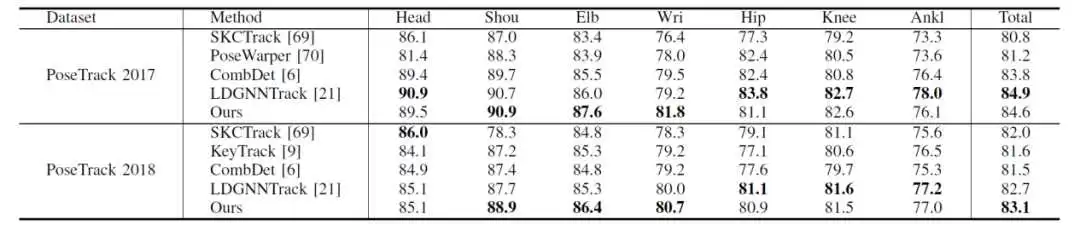 表2 多人姿态跟踪方法在 PoseTrack验证集上的的性能比较(MOTA %)