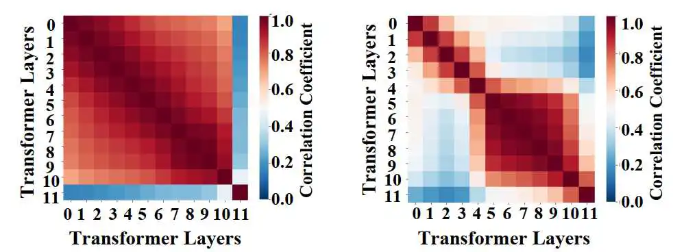 图2 跨不同Transformer层分类表示元和其他表示元的相关性