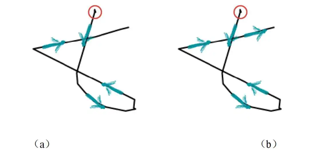 图1 标准字符和非标准字符的比较 (a)笔画顺序正确的字符 (b)笔画顺序不正确的字符