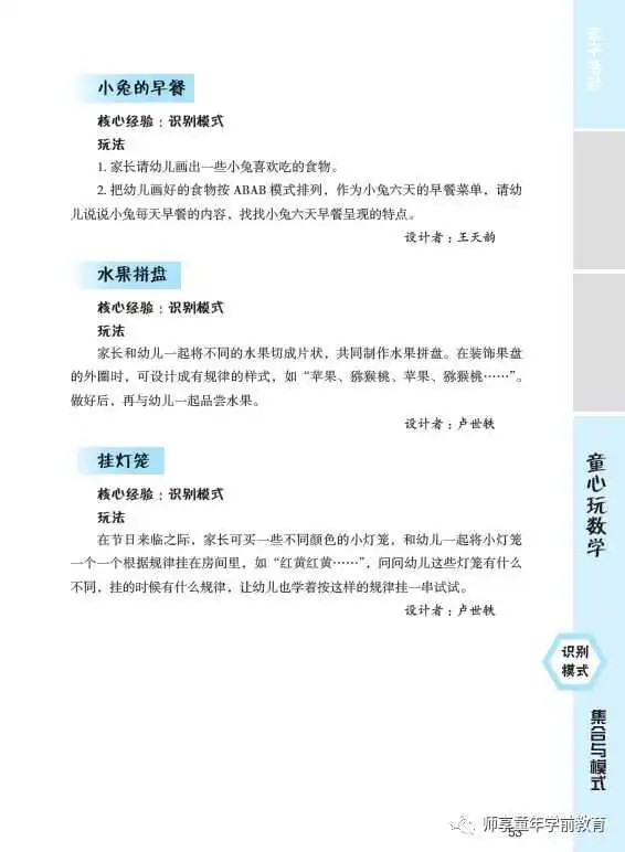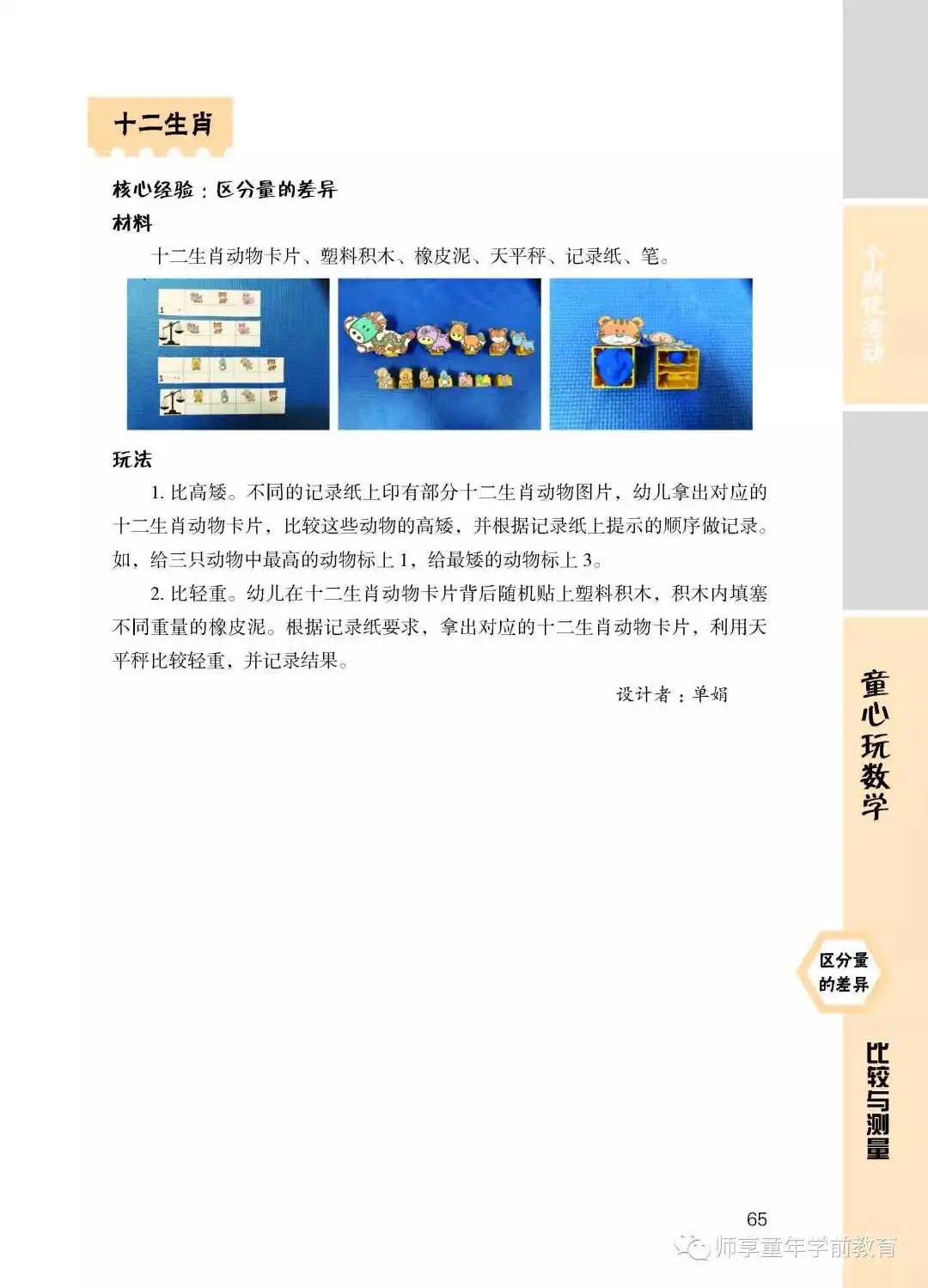 《童心玩数学》以“数概念与运算”“集合与模式”“比较与测量”“图形与空间”四大板块的核心经验为主线,更注重以下四方面的特征: