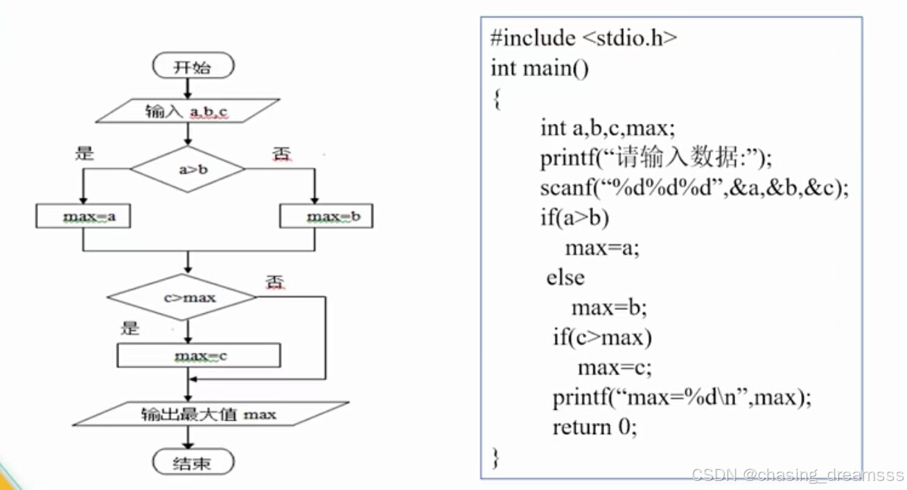 第二步:求a和b中的较大值,如果a大于b,则将a的值赋max,否则就将b的值赋给max;