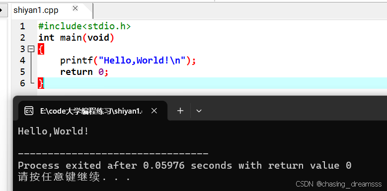 例1:要求在屏幕上输出以下一行信息Hello,World!