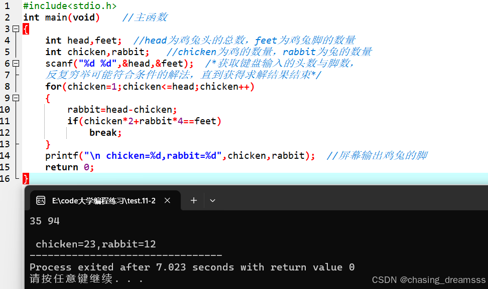 例3:实现“鸡兔同笼”问题穷举法的C程序