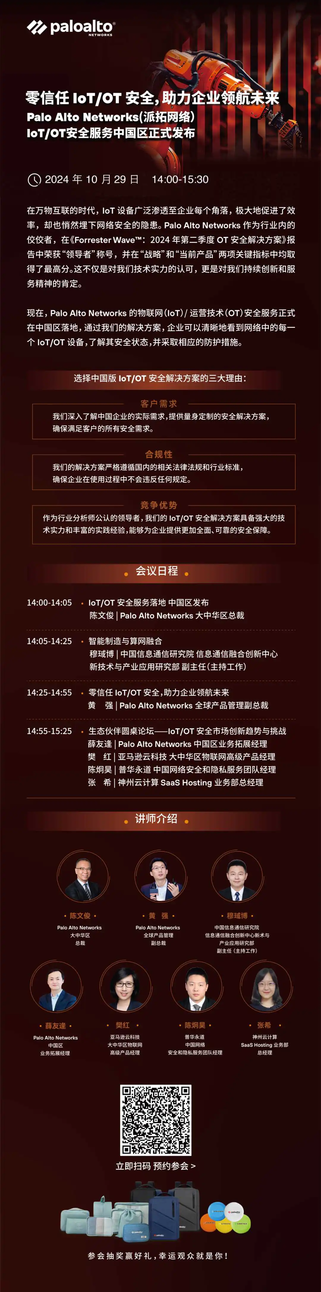 ▶邀请函 | 派拓网络IoT/OT安全服务落地中国区发布会即将隆重启幕