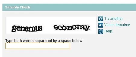 第二代验证码出现了。此前的版本是单纯的模糊字母,现在则是需要用户辨认两个单词。这两个单词都来自扫描后的文件或书籍。