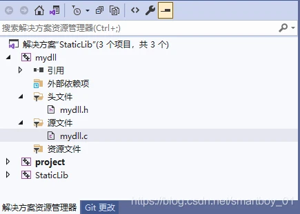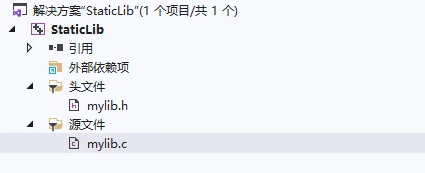 在解决方案资源管理器的头文件中添加,mylib.h文件,在源文件添加mylib.c文件(即实现文件)。