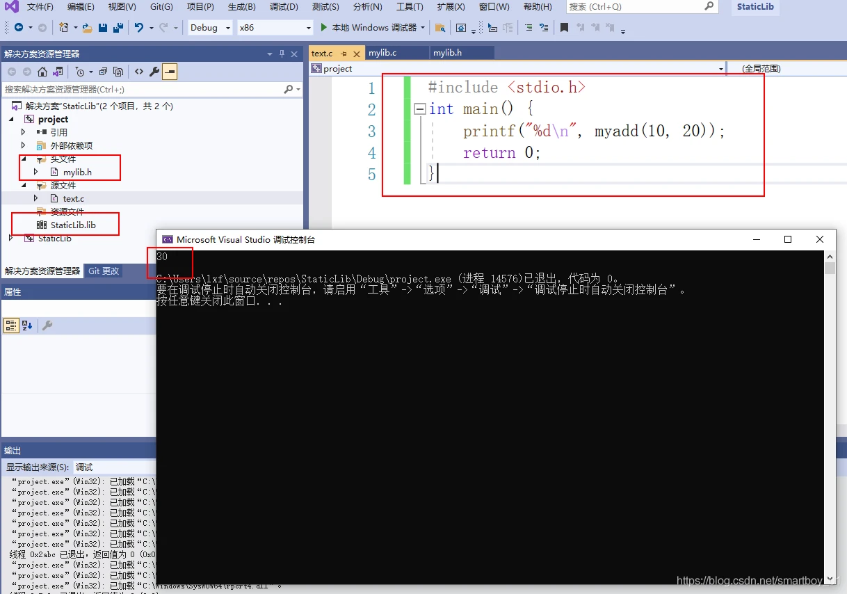 编译生成新的解决方案,在Debug文件夹下会得到mylib.lib (对象文件库),将该.lib文件和相应头文件给用户,用户就可以使用该库里的函数了。