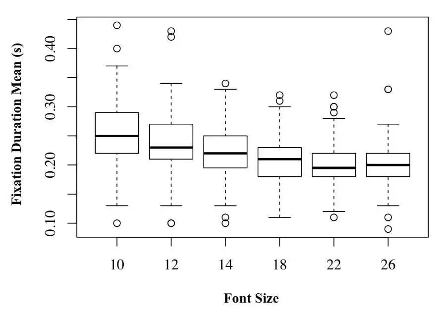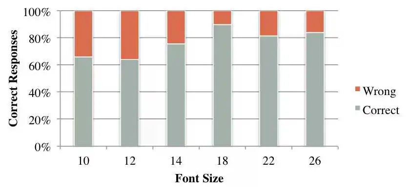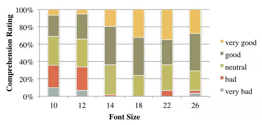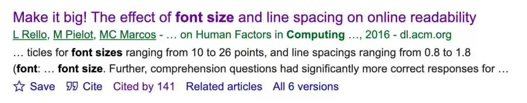 好在有篇2016年的论文,首次突破了14pt的限制,研究的字号范围够广从10pt到26pt的6种字号,这回应该够用了。而且被引用141次,在HCI人机交互这个领域也算不错了。