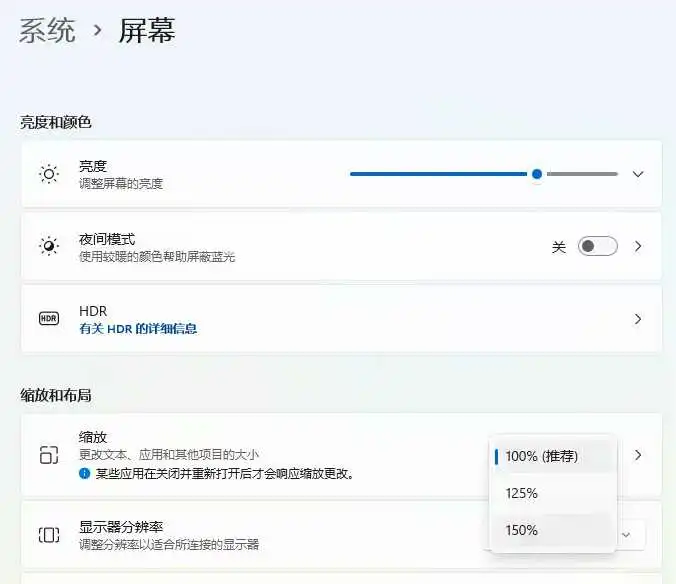 Windows可以打开设置,在「系统 > 屏幕」里找到缩放功能: