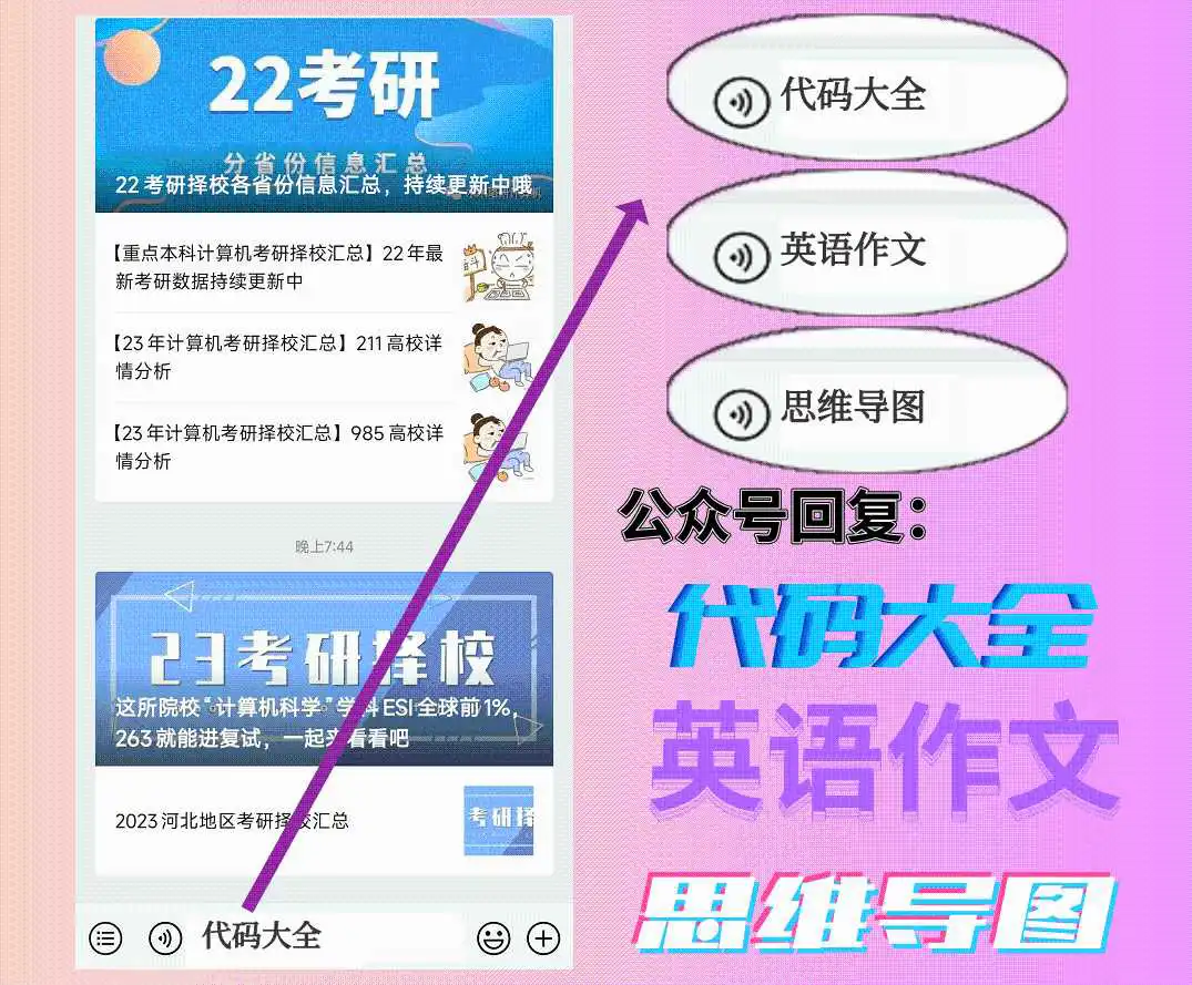 2.公众号后台关键字回复:思维导图/代码大全/英语作文