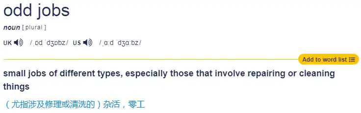 odd大家都知道有“奇怪”的意思,可能有同学看到odd jobs,第一反应理解为“奇怪的工作”,其实不对的。