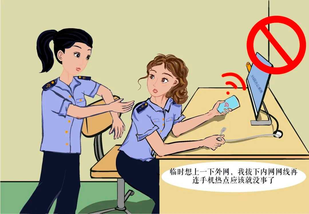 🔺常见错误情形:一是外网电脑通过内网网线接入内网;二是私自将内网进行无线网络组网,利用外网电脑通过内网Wi-Fi连接内网。