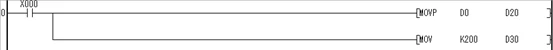 A.X000常开触点由断开到闭合时,MOVP指令将D0中的数据传送到D20中。