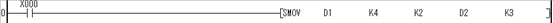 B.X000常开触点闭合时,将D1中第4位开始的2个数移位到D2中第3位开始的2个位置上去。