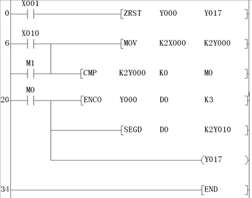 B.X010常开触点闭合时,X000~X007组成的8位二进制数据被传送到Y000~Y007中。