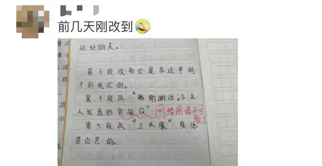 当天,周果就将禁用的网络用语范围告知学生,并坚持在学生上交的作业中对禁用词进行批注。