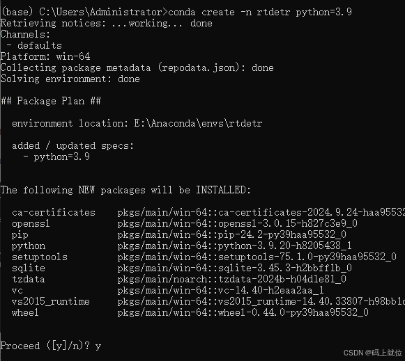 接下来就是创建RT-DETR所需的虚拟环境(具体的版本我希望大家按照我安装的版本来,这样避免出现不兼容情况),我把虚拟环境名称定义为rtdetr(是因为环境太多,害怕后面自己记混,在这里也建议大家自己创建虚拟环境的时候也起一个相关的名称)