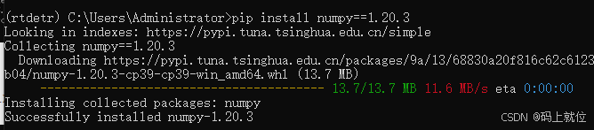 但是请大家注意,上面这是把只要的几个库给安装成功了,在实际运行代码时候,还会有需要安装好的库,到时候按需安装。 输入命令 pip install xxx(库的名称)