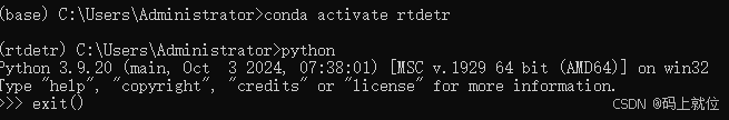 再输入 exit() 退出到虚拟环境中安装torch、cuda等