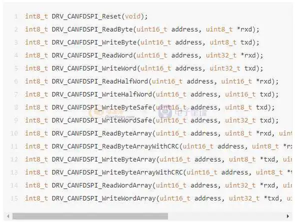 而支撑上述指令实现的底层驱动代码为“DRV_SPI”中plib_sercom1_spi_master.c中的如下函数。若您在其他MCU平台应用该方案,那么您需自己实现这个函数,以支撑drv_canfdspi_api.c中相关函数的实现。