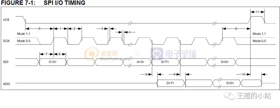 操作MCP2518FD的基础就是其与MCU要可靠通信,所以首先看下MCP2518FD对SPI的时序要求,SPI仅支持模式0和模式3,同时要求SPI时钟速率FSCK最高20MHz且FSCK 必须小于等于FSYSCLK/2。这里FSYSCLK可以设计为10、20和40MHz,但一般取40MHz。