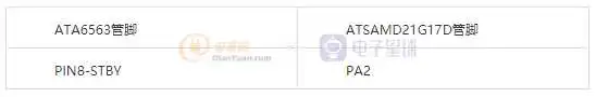 ATSAMD21G17D和ATA6563的软硬件接口表如下。