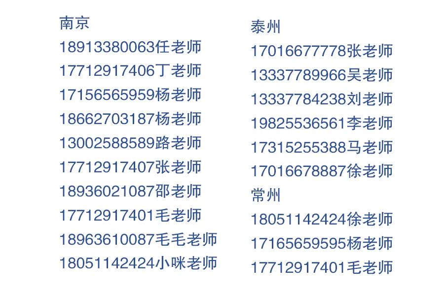 ①南京市鼓楼区中山路179号易发信息大厦15楼F座(毛老师:)