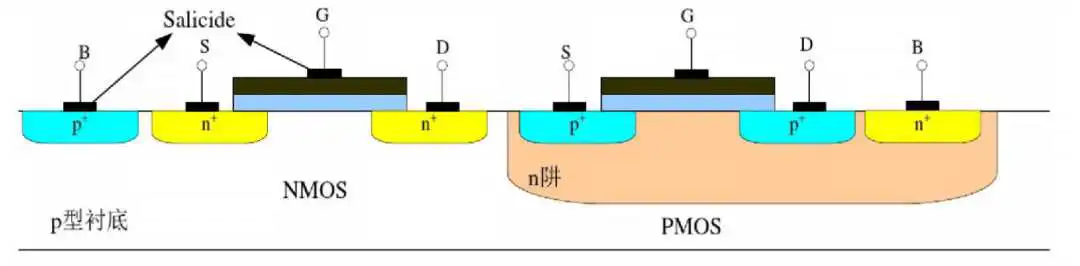 他们将PMOS与NMOS晶体管组合在一起,连接成互补结构,几乎没有静态电流。这也是CMOS晶体管的“C(Complementary,互补)”的由来。