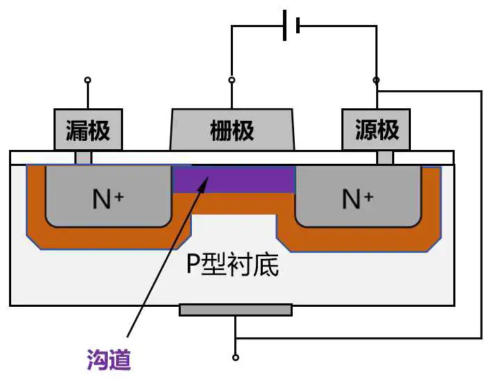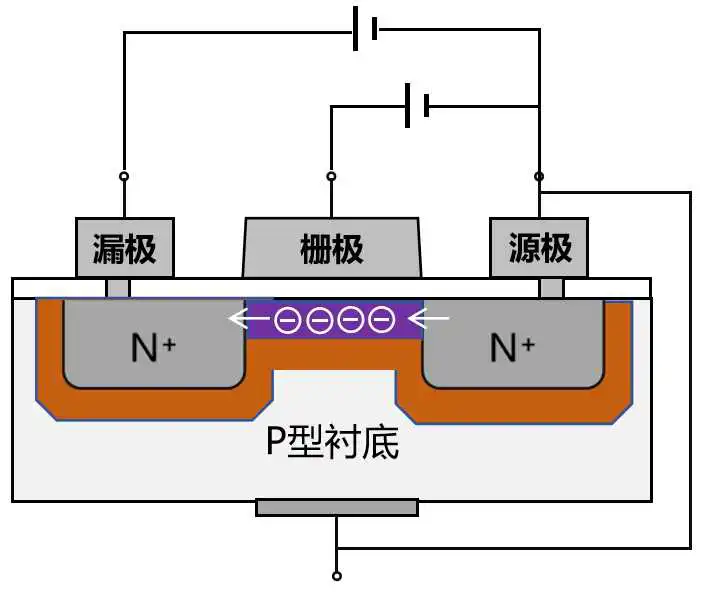 给栅极提供正向电压后,P区的电子会在电场的作用下聚集到栅极氧化硅下,形成一个以电子为多子的区域,也就是一个沟道。