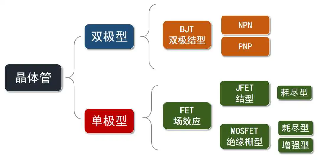 刚才介绍了BJT、JFET、MOSFET,我先画个图,大家思路不要乱: