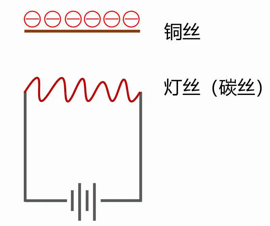 当时,他正在进行灯丝(碳丝)的寿命测试。在灯丝旁边,他放置了一根铜丝,但铜丝并没有接在任何电极上。也就是说,铜丝没有通电。