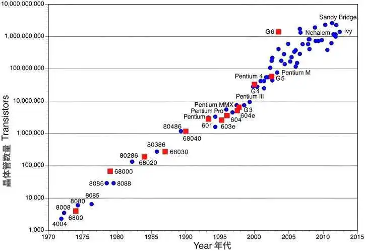 那之后的故事,大家应该都比较熟悉了。在材料、工艺和制程的共同努力下,集成电路的晶体管数量不断增加,性能持续提升,成本逐步下降,我们进入了摩尔定律时代。